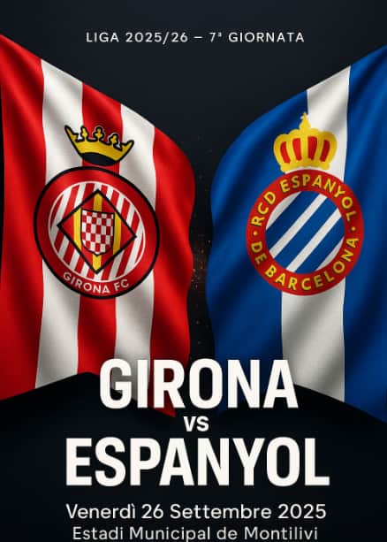 Derby teso e verticale, con il Girona che cerca di spezzare il digiuno contro un Espanyol più sereno e in fiducia. Equilibrio alto, ma l’inerzia storica recente al Montilivi e la “comfort zone” di Míchel nel matchup riportano la bilancia verso i padroni di casa… a patto di non incassare per primo.