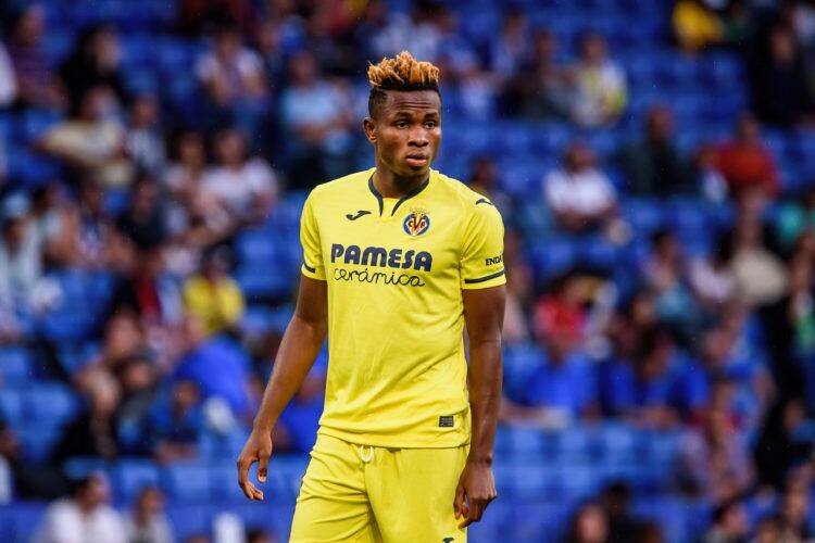 BARCELONA - OCT 20: Samuel Chukwueze plays at the La Liga match between RCD Espanyol and Villarreal CF at the RCDE Stadium on October 20, 2019 in Barcelona, Spain.