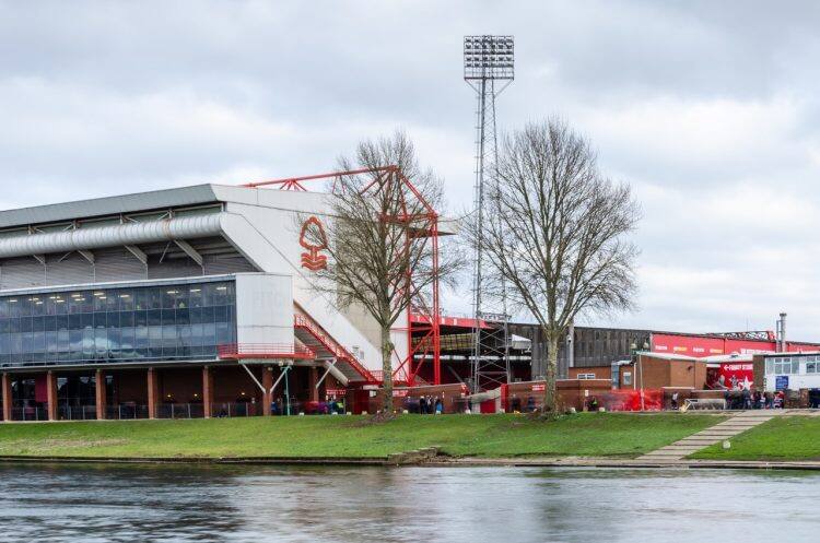 Long exposure of the River Trent and City Ground, home of Nottingham Forest Football Club in Nottingham, UK on the 1st January 2019