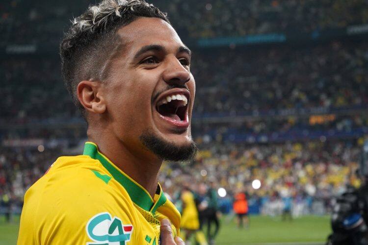 Ludovic Blas of FC Nantes happy after the victory of the Coupe de France final between FC Nantes and OGC Nice in Stade de France in Paris at 07 05 2022