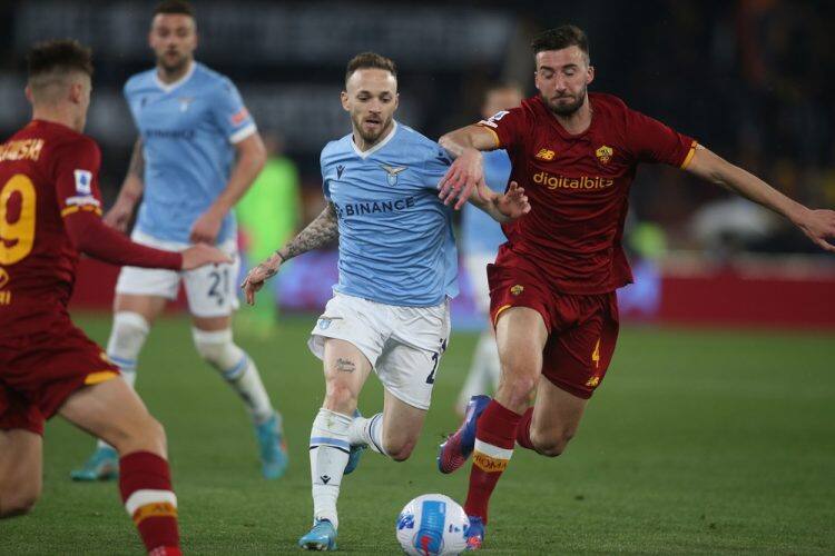 Rome,,Italy,-,20.03.2022:,Manuel,Lazzari,(lazio),,Bryan,Cristante,(as