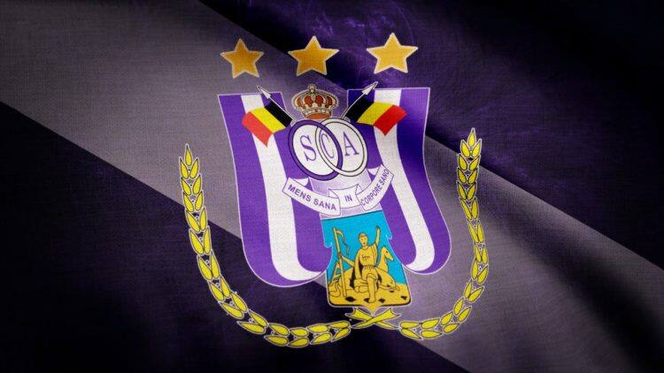 USA - NEW YORK, 12 August 2018: Waving flag with R.S.C. Anderlecht football club logo. Close-up of waving flag with R.S.C. Anderlecht football club logo, seamless loop, blue background. Editorial